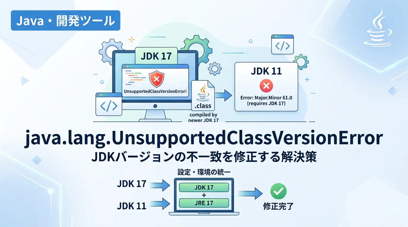 Javaの開発や運用において、実行時に突然java.lang.UnsupportedClassVersionErrorが発生し、プログラムが停止してしまうことがあります。