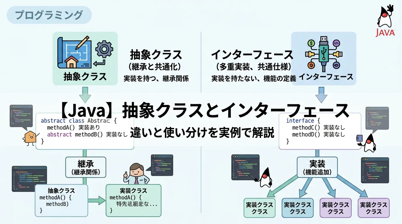 Javaインターフェースの基本と実践的な使い方|抽象クラスとの違いもわかりやすく解説